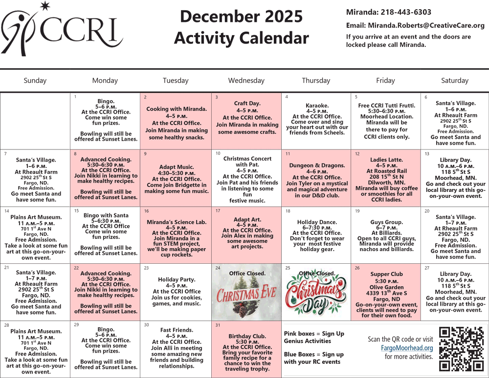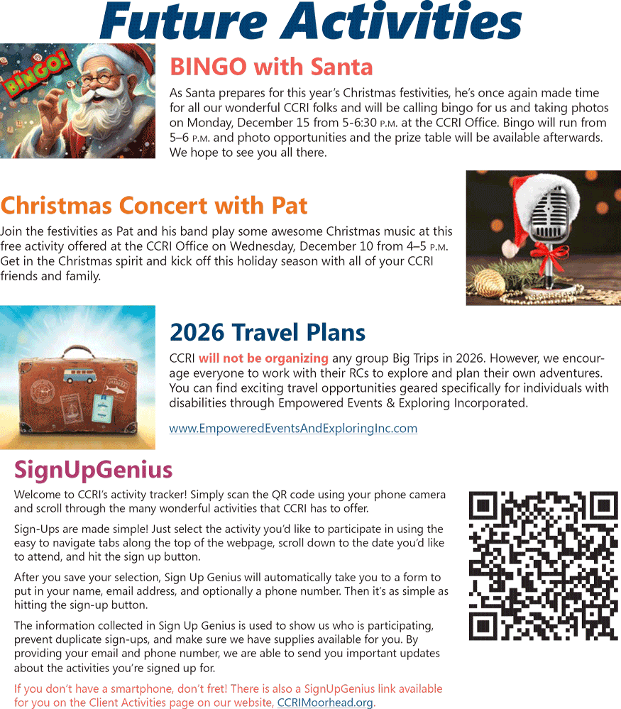 Activities listed on this calendar are funded in part by donations made to the CCRI Service Enhancement Fund.